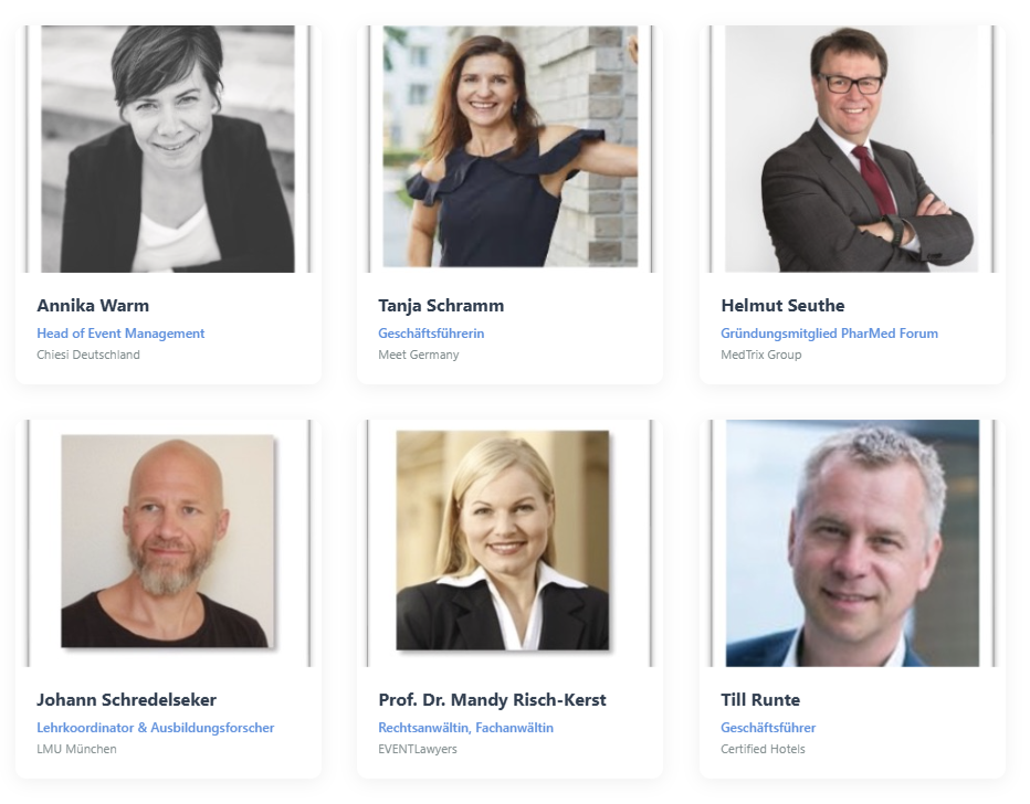 • Veranstaltungsplaner:innen aus Pharmaunternehmen, Kliniken, Fachgesellschaften, Agenturen